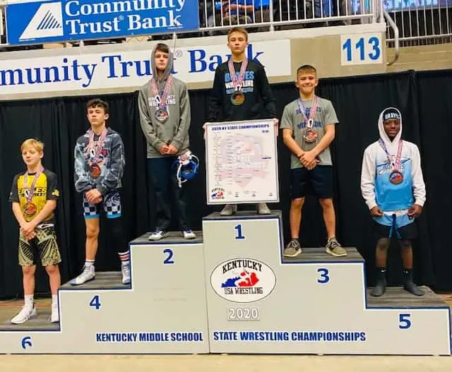 Pinning all of his opponents in the first period in a combined time of 2 minutes and 39 seconds while not giving up a single point, he became the 2020 Kentucky Middle School State Champion at 98 pounds.