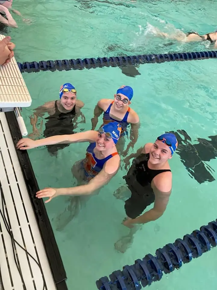 In individual events, Thompson competed in the 50 freestyle and Miller in the 100 butterfly. All four made up the 200 and 400 freestyle relay teams that also qualified for the state meet.