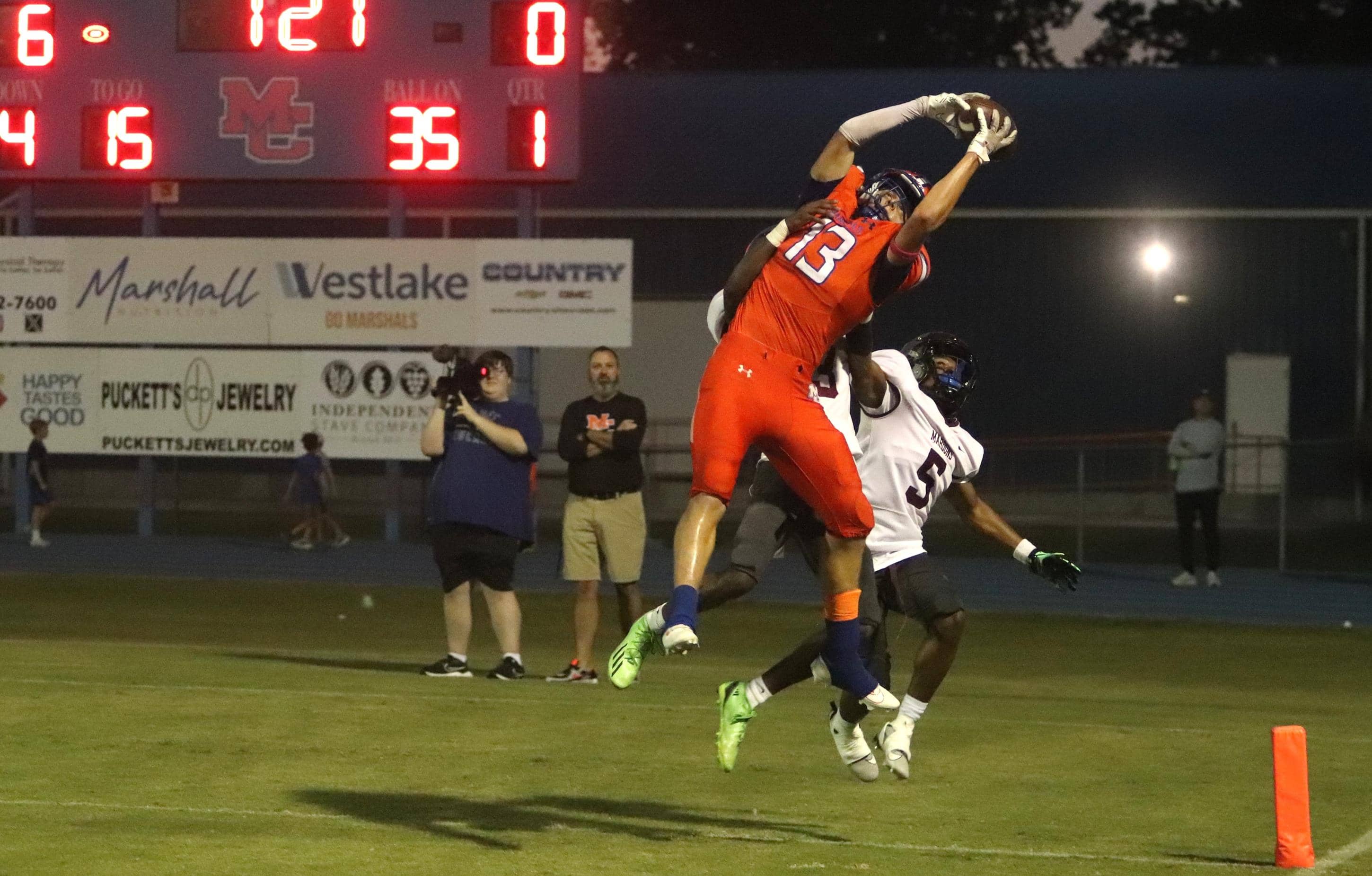 A combined 100 points were scored at Carroll Traylor Stadium but unfortunately for the Marshals, 70 of those came from Madisonville-North Hopkins who were led by junior quarterback Kanyon Johnson and sophomore running back Markezz Hightower. Johnson and Hightower rushed for a combined 505 yards.