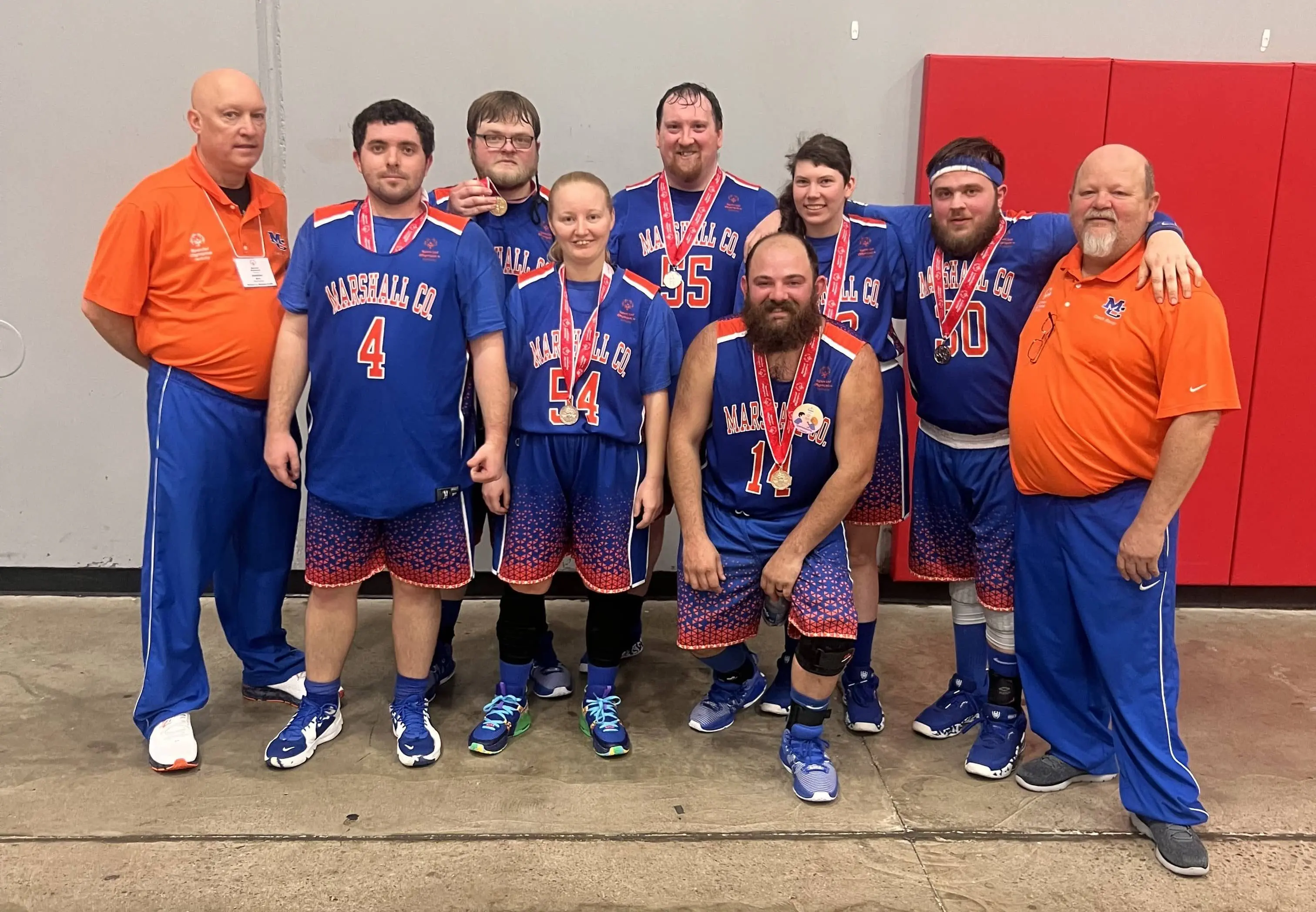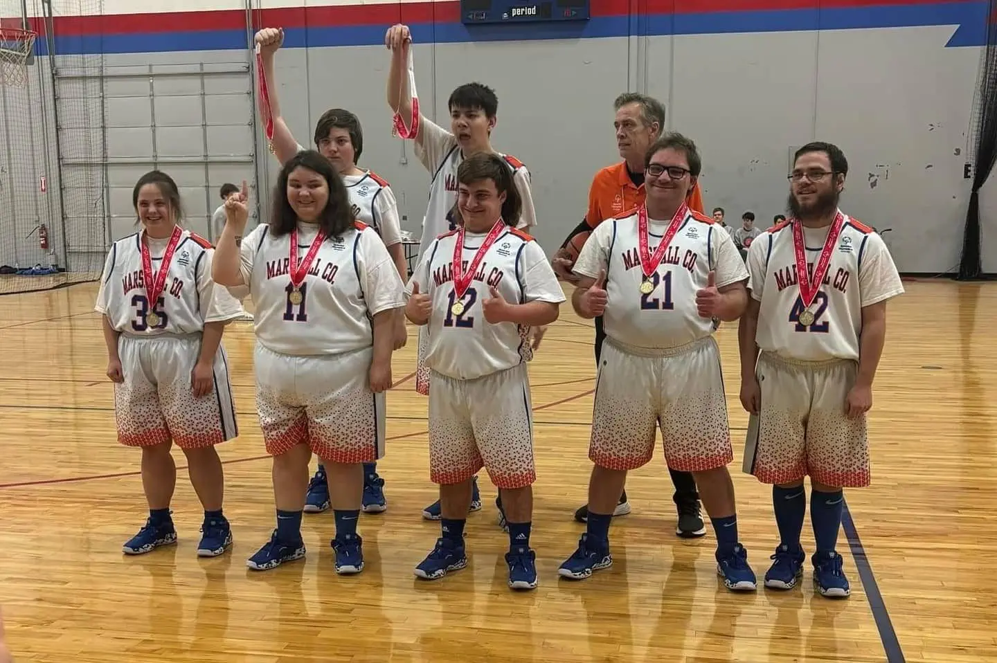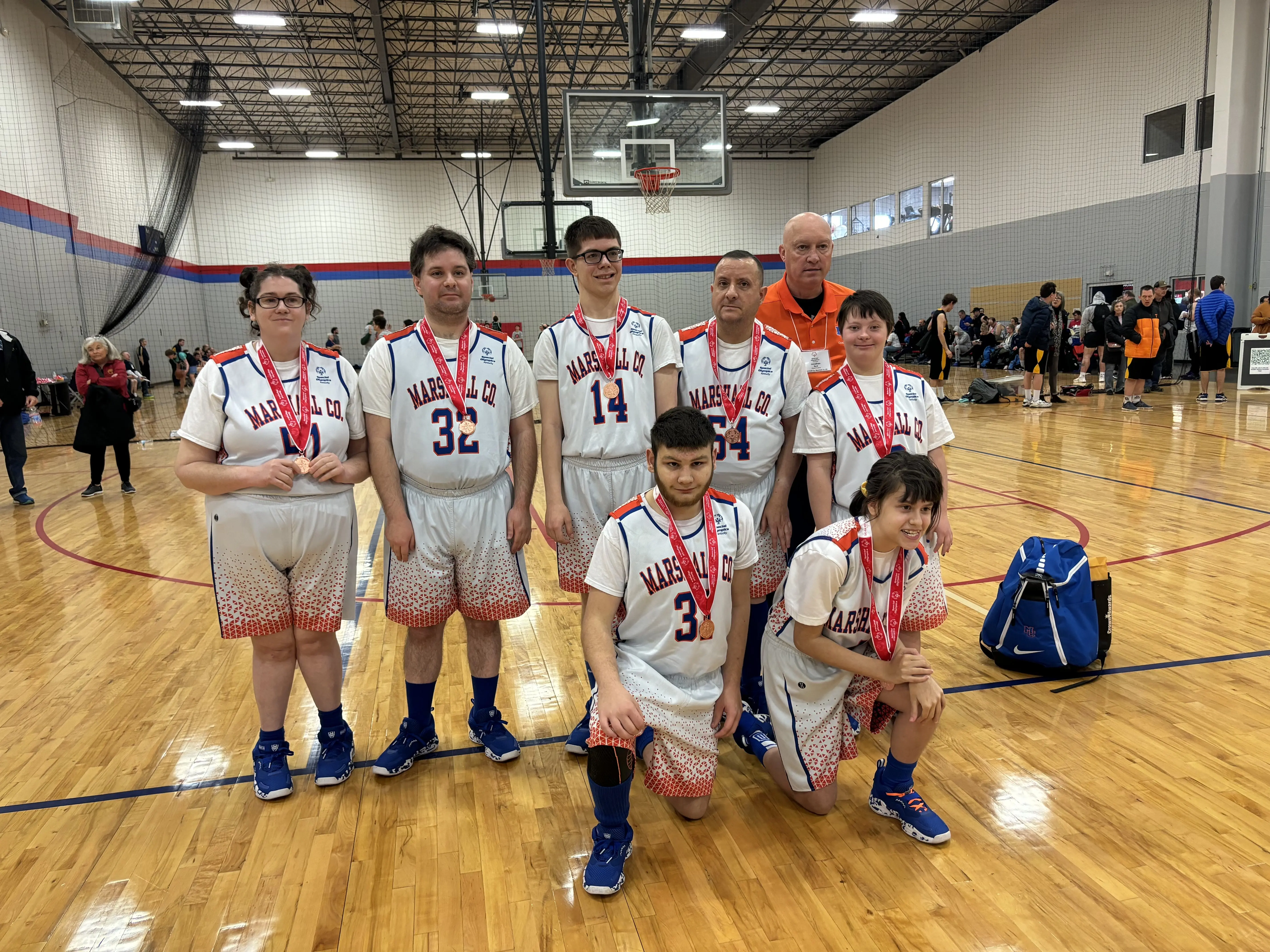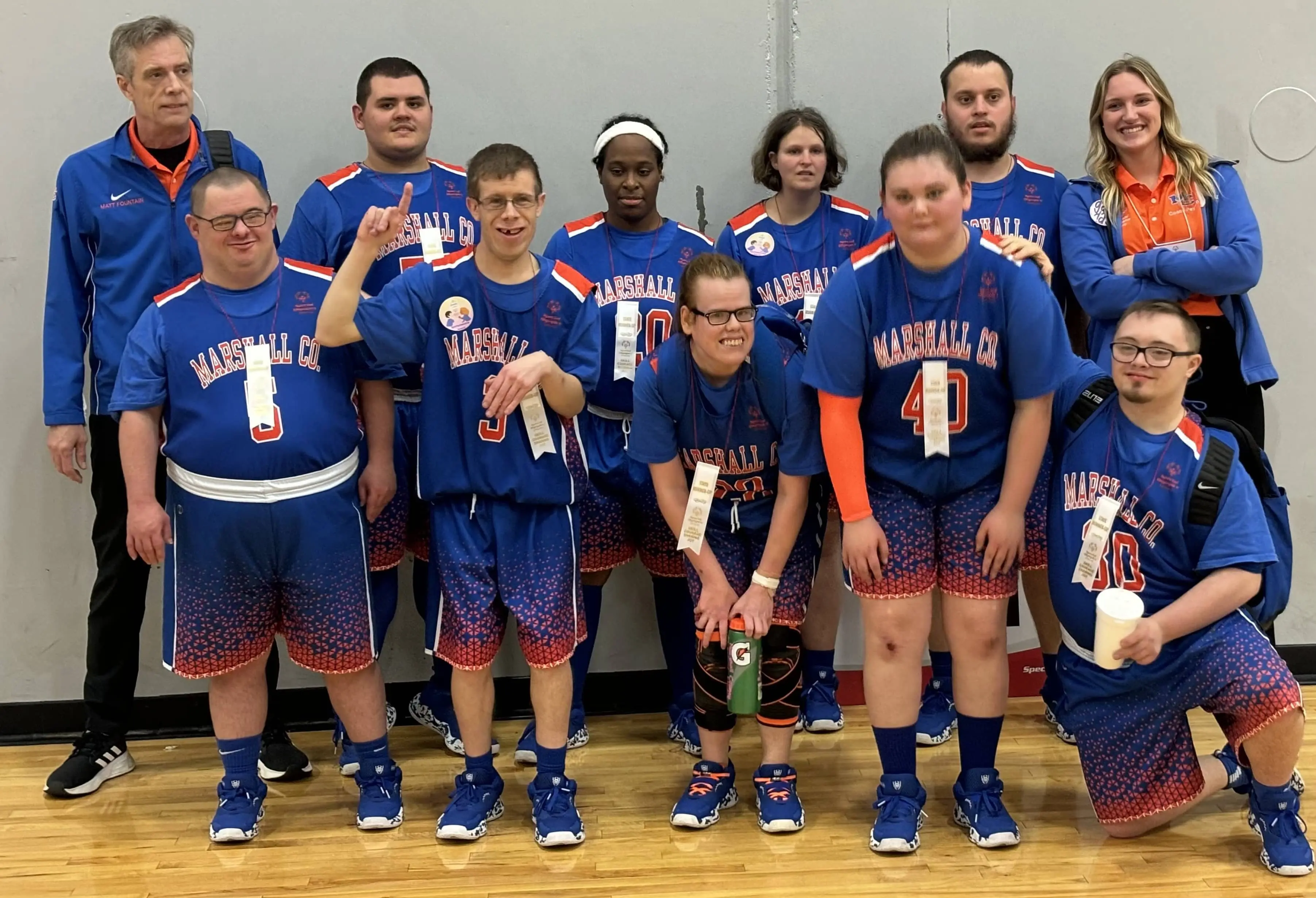 At the “March Magic” State Basketball Tournament held at MidAmerica Sports in Louisville March 9-10, the Marshall County Special Olympics basketball teams enjoyed great success. Along with a State Champion title, the Marshall 2 team finished 3A State Runner-up and the Marshall 5 team placed fourth. In the State Skills Tournament, the Marshall 4 team won Gold and the Marshall 1 team took Bronze.