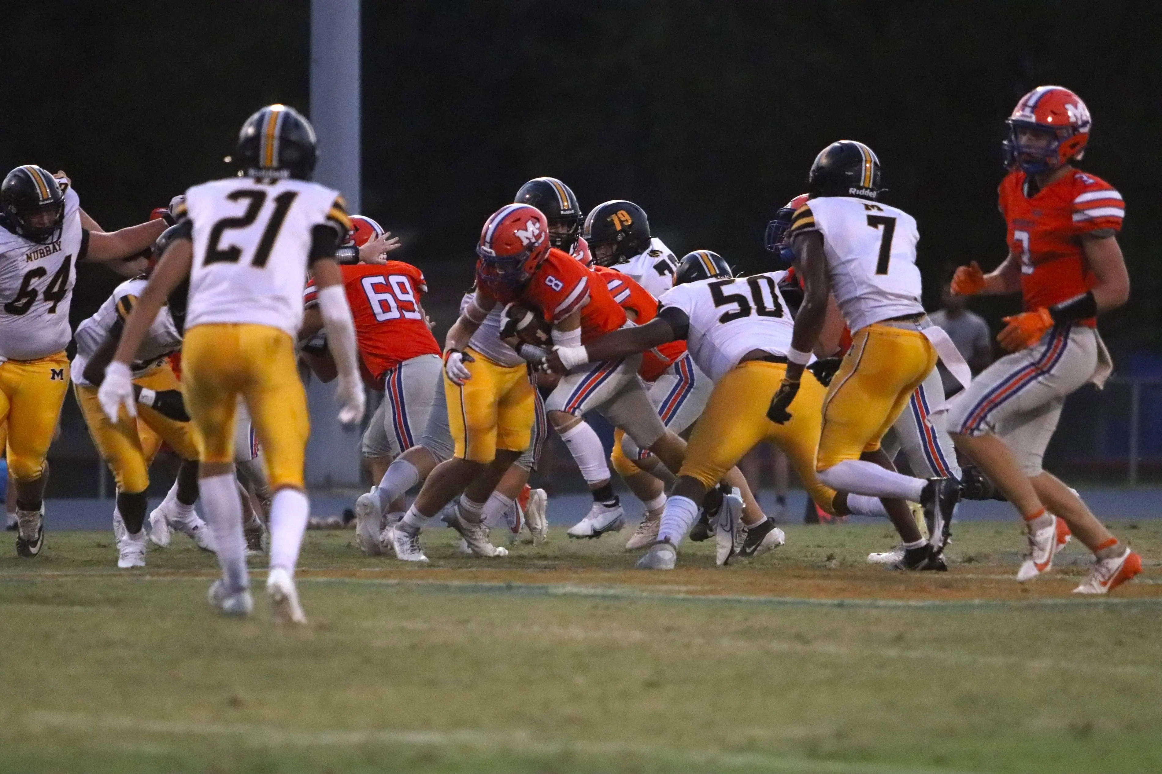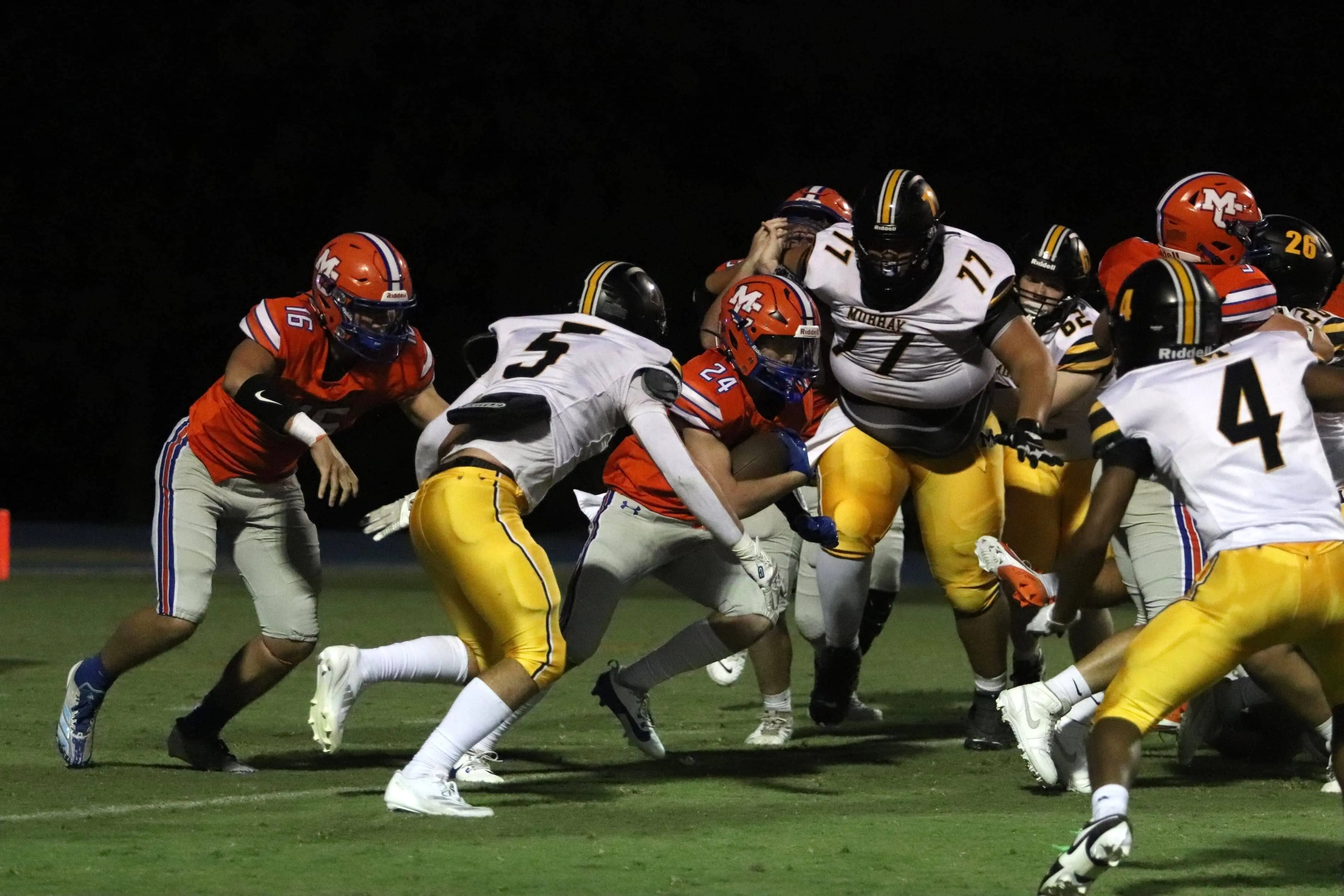 Murray’s Jeremiah Jones, a Nebraska commit, was a force to contain. Jones picked up over 119 yards on three receptions including one that went 72 yards. Junior quarterback Wyatt Robbins, who came into Friday’s game with over 550 yards in passing, also had a big night for the Tigers. Robbins was 14 of 17 for 273 yards and three for touchdowns.
