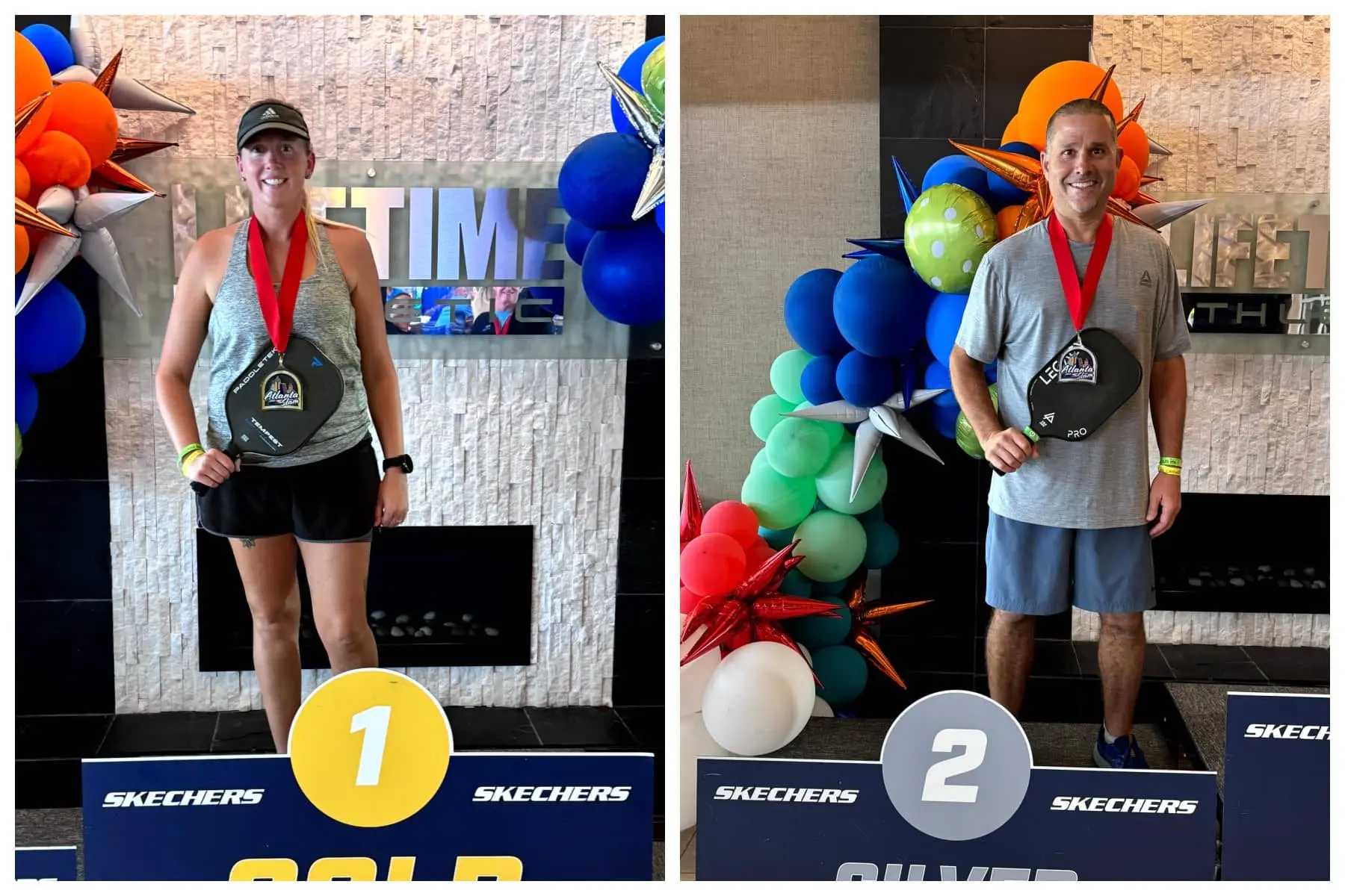 Events were held at the LifeTime Peachtree Corners luxury health club featuring 40 courts. With over 1200 entries, players competed in Men’s Singles, Women’s Singles, Women’s Doubles, Men’s Doubles, and Mixed Doubles. Friday was Men’s and Women’s (any age) Doubles play day. Friday the 13th wasn’t the best weather day for outside pickleball. Rain from Hurricane Francine forced cancellation of several events that couldn’t be moved inside.